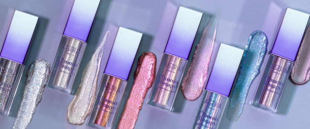 Chromo Therapy از Astra Make-Up یک سایه چشم مایع با بافتی درخشان و چند بعدی است. این محصول با الهام از سطوح درخشان و فرازمینی، جلوهای ویژه بر پلک ایجاد میکند .